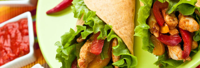 Κοτόπουλο fajitas 4 μερίδες Συστατικά: 1 κουταλάκι ελαιόλαδο 1 τεμαχισμένο κρεμμύδι 1 κόκκινη πιπεριά…