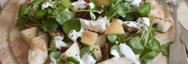 Σαλάτα waldorf με κοτόπουλο 4 μερίδες Συστατικά: 545 g στήθος κοτόπουλου, χωρίς κόκαλα και…