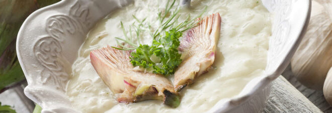 Σούπα με αγκινάρα 4 μερίδες Συστατικά: 1 κονσέρβα (≈400 g) καρδιές αγκινάρας, στραγγισμένες 1…