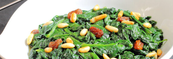 Σπανάκι σωτέ με καρύδι και κουκουνάρι 4 μερίδες Συστατικά: 1000 g φρέσκο σπανάκι, χωρίς…