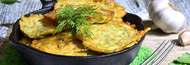 Τηγανίτες κολοκυθιού 4 μερίδες Συστατικά: 2 κολοκυθάκια τριμμένα 1 αυγό, ελαφρώς χτυπημένο 1 σκελίδα…