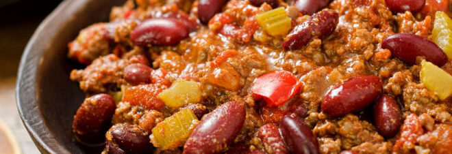 Τσίλι βοδινού κρέατος και φασολιών verde 4 μερίδες Συστατικά: 450 g άπαχο μοσχαρίσιο κιμά…